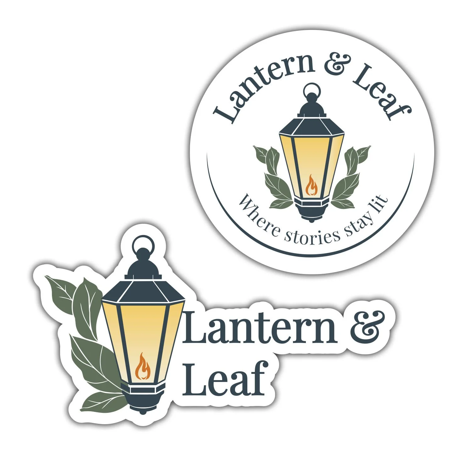 The lantern symbolizes guidance, warmth, and shared stories, while the leaves represent growth, learning, and quiet reflection. Together, they evoke a place where stories are discovered and linger.